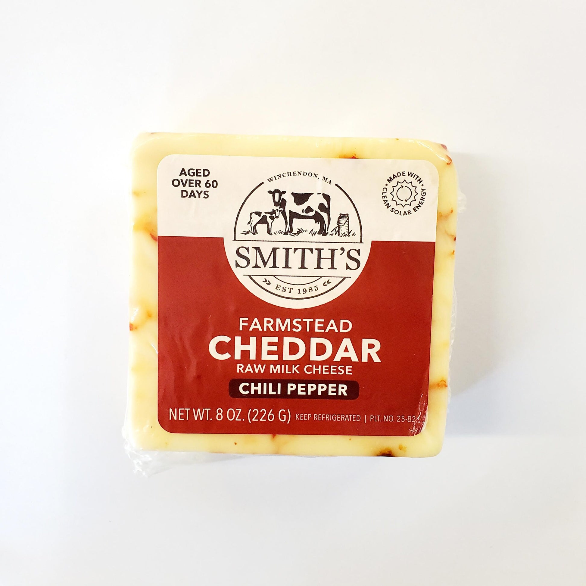 A classic smooth Farmstead cheddar. Chipotle and crushed red peppers are mixed throughout the curd for a smoky, spicy cheese. Made with raw cow's milk Cheddar, vegetarian enzymes (Non-GMO).